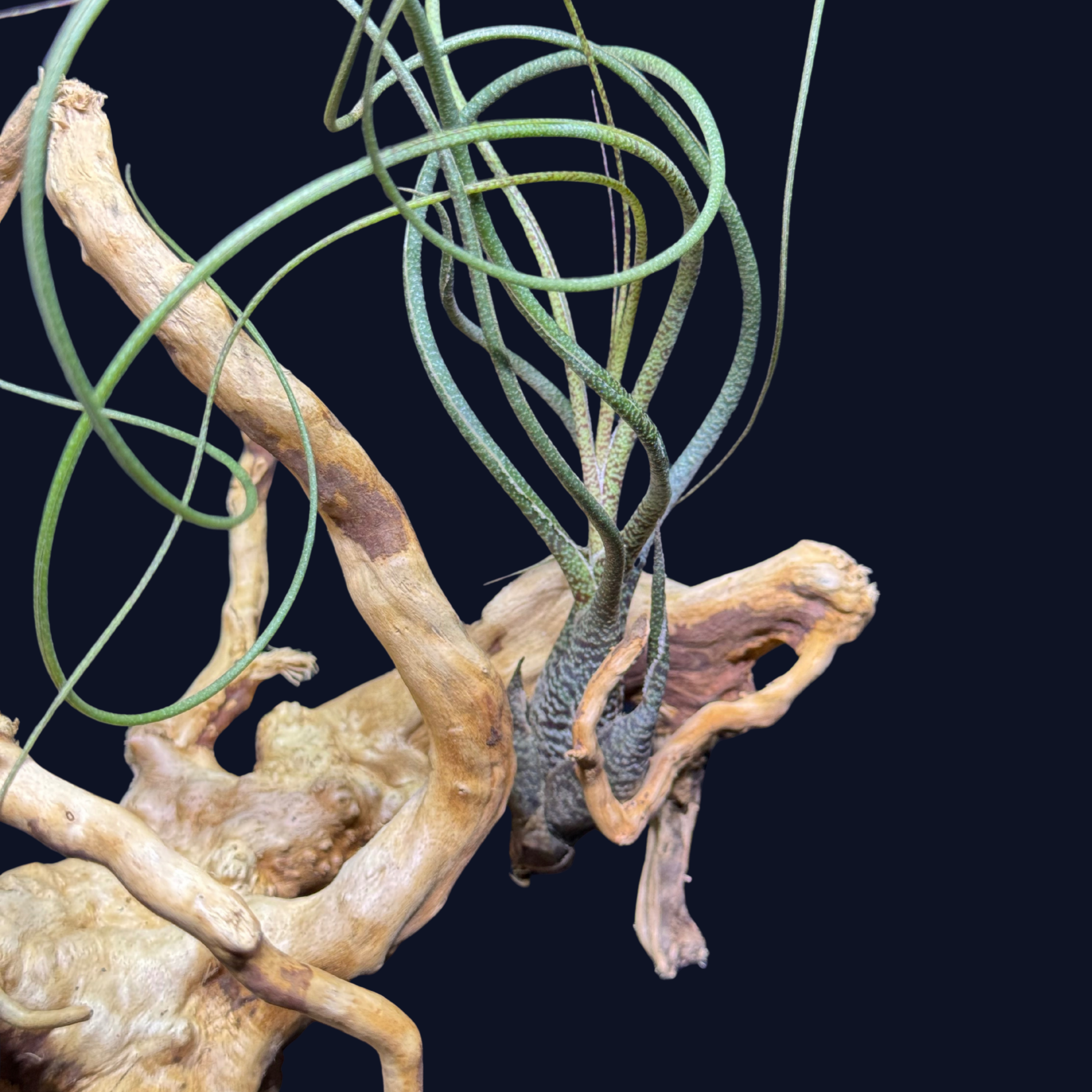 W terrarium najlepiej umieścić Tillandsię w miejscu o umiarkowanym świetle i dobrej cyrkulacji powietrza. Świetnie komponuje się z mchem, paprociami i bromeliami, tworząc naturalne, tropikalne kompozycje.