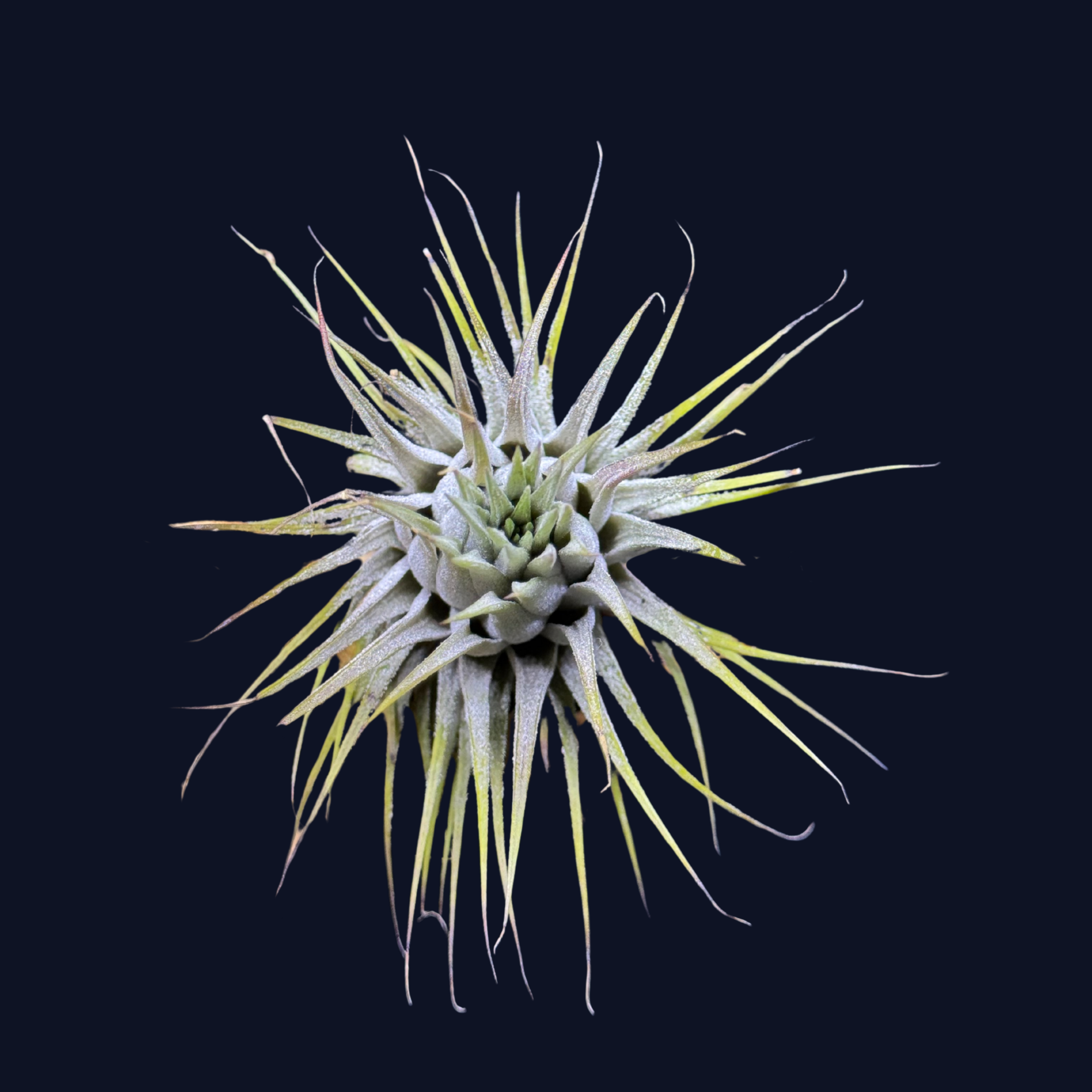 Tillandsia ionantha Pinecone należy do rodziny bromeliowatych , do której zaliczają się także popularne neoregelie czy guzmanie. To klasyczna roślina epifityczna – air plant, która nie wymaga podłoża. W naturze przyczepia się do gałęzi i pni drzew, czerpiąc wilgoć i składniki odżywcze z powietrza za pomocą mikroskopijnych włosków (trichomów) na powierzchni liści. Odmiana Pinecone wyróżnia się wyjątkowym, zwartym pokrojem i charakterystycznym kształtem przypominającym szyszkę – stąd jej nazwa.